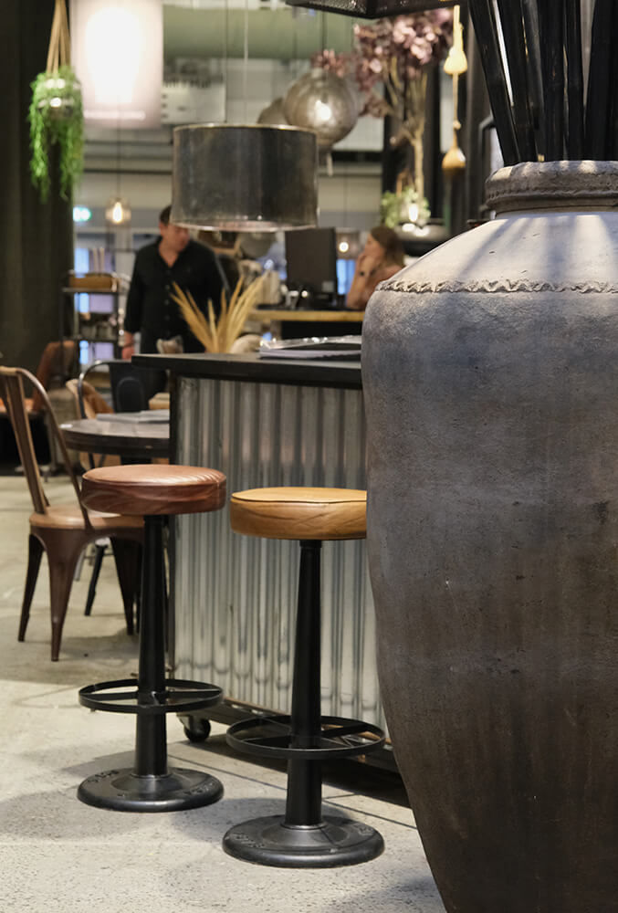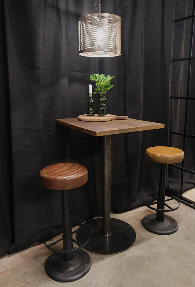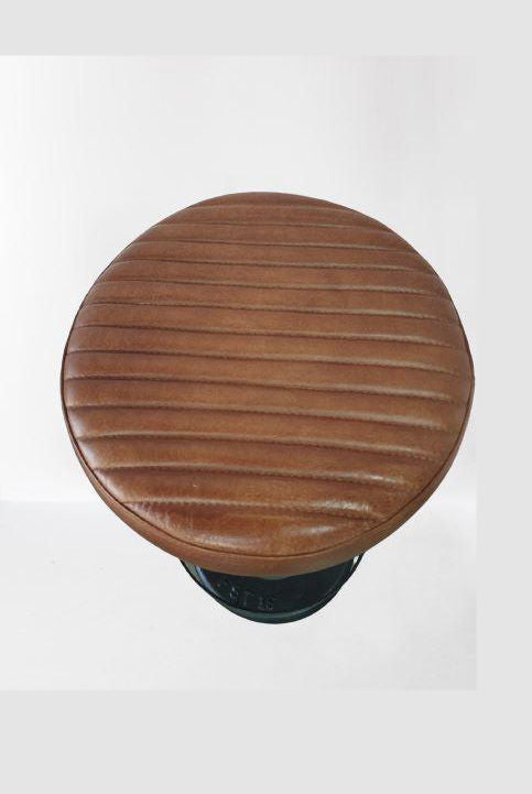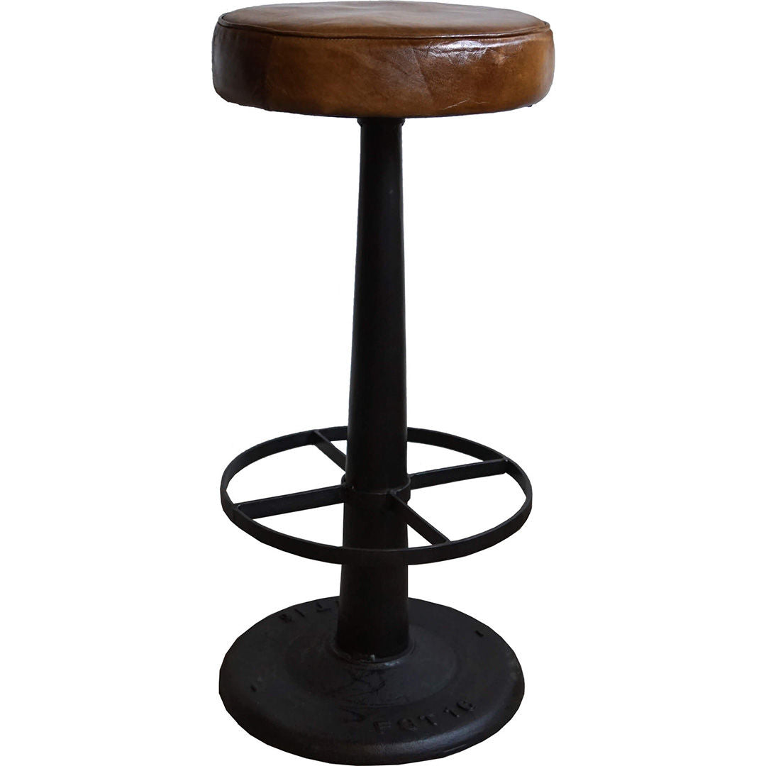 Skøn rustik barstol med rundt quiltet lædersæde og et sort jernstel. Den har et cool look, og læderet har en neutral og lækker brun farve. Det quiltede sæde tilføjer både karakter og komfort, mens det sorte jernstel giver et råt og industrielt udtryk. Barstolen passer perfekt til indretning i baren eller ved et højbord i hjemmet og fungerer også glimrende som en ekstra siddeplads, når det kræves. Leder du efter en variant uden quiltning, findes der en barstol i samme serie med et mere minimalistisk sæde (varenummer MA1122).