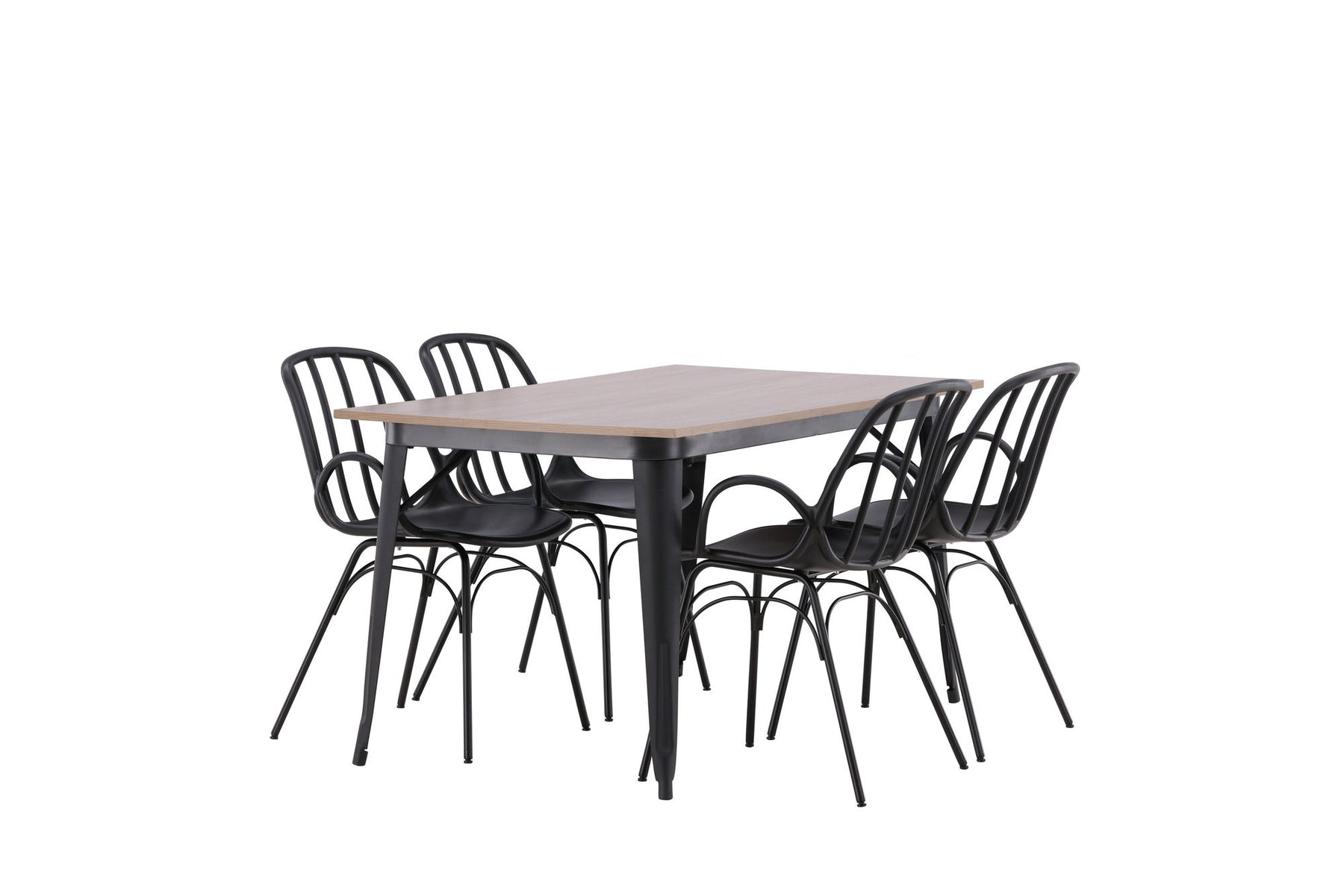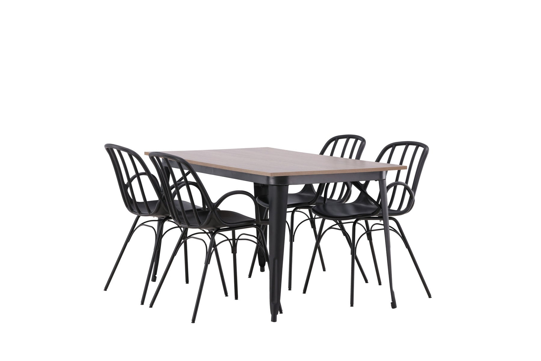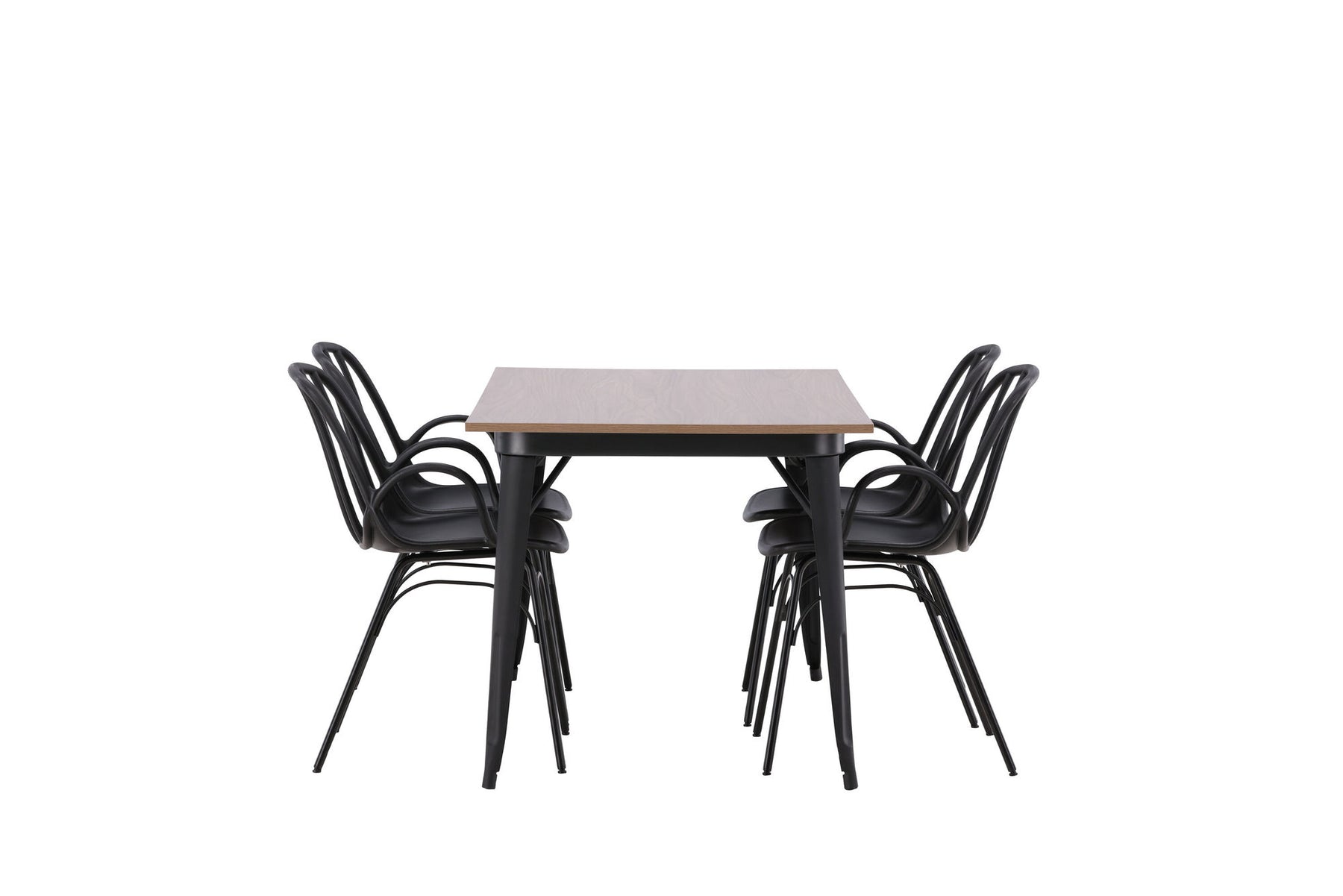 A dining group that exudes modernity and Nordic design! The dining table from the Tempe series is both trend-proof and durable. Made with a rectangular table top in brown MDF and table legs in black metal. Here together with our popular dining chairs from the series Dyrön. The chair is as stylish as it is practical, made of black plastic and steel. The seat has integrated armrests and a ribbed design in the slightly rounded back. Furnish the heart of the home invitingly and create a pleasant atmosphere!