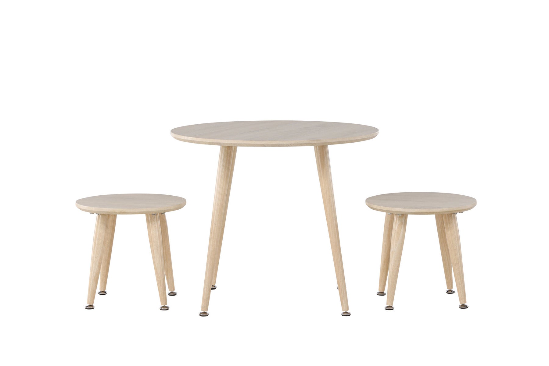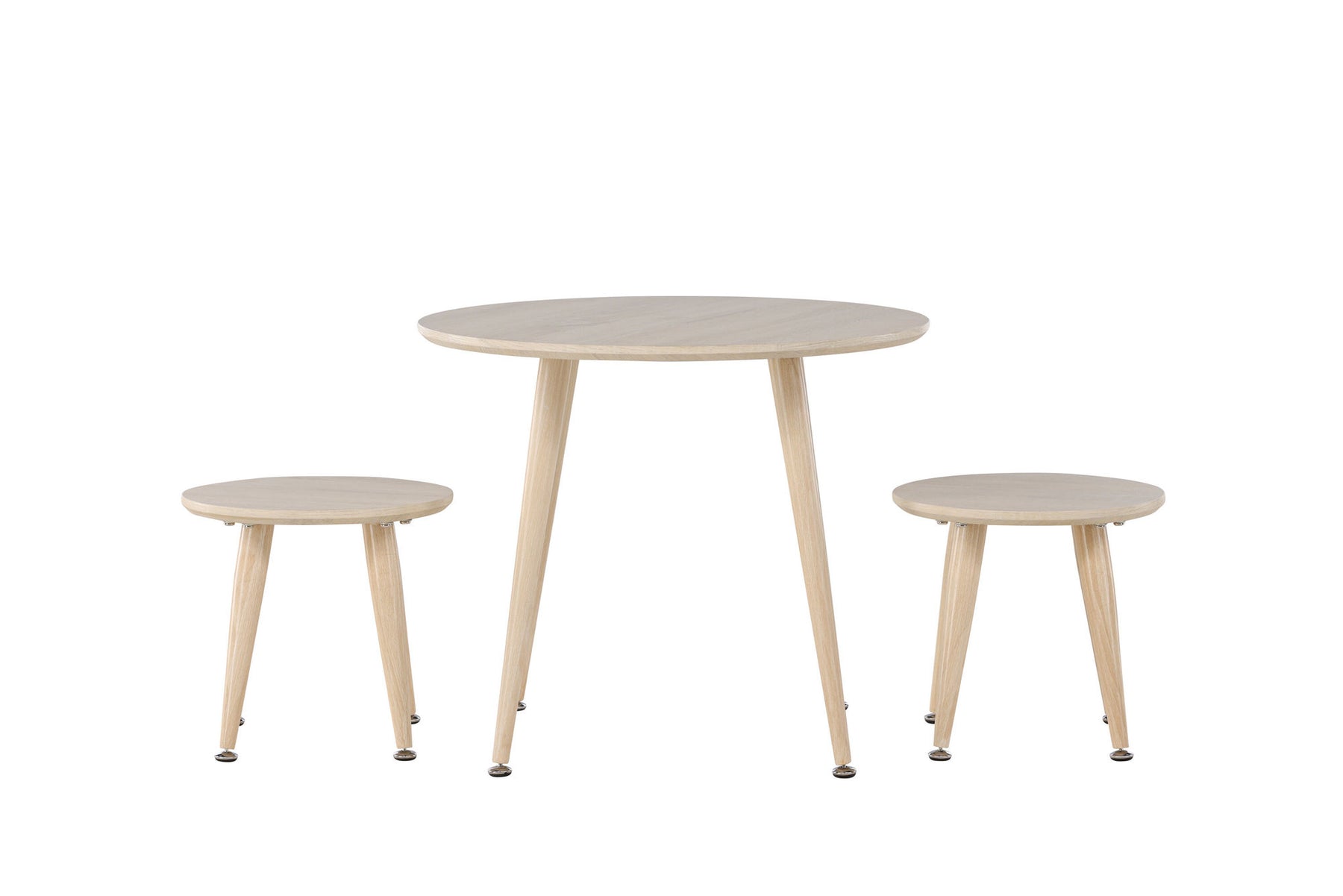The Kids set is designed in an elegant whitewashed color that adds a modern touch to the room while providing a warm and inviting feeling. The table has a diameter of 60 cm, perfect for play and activities.