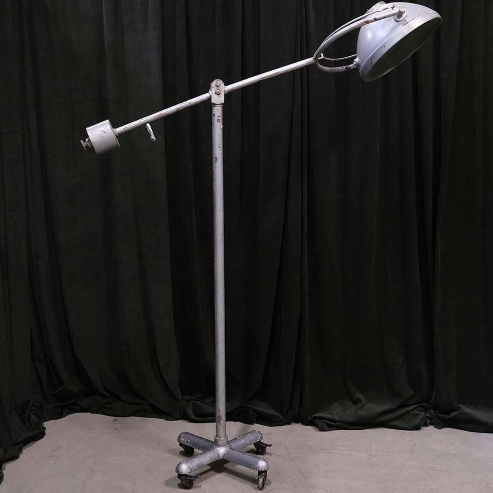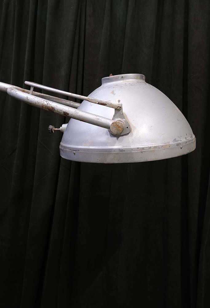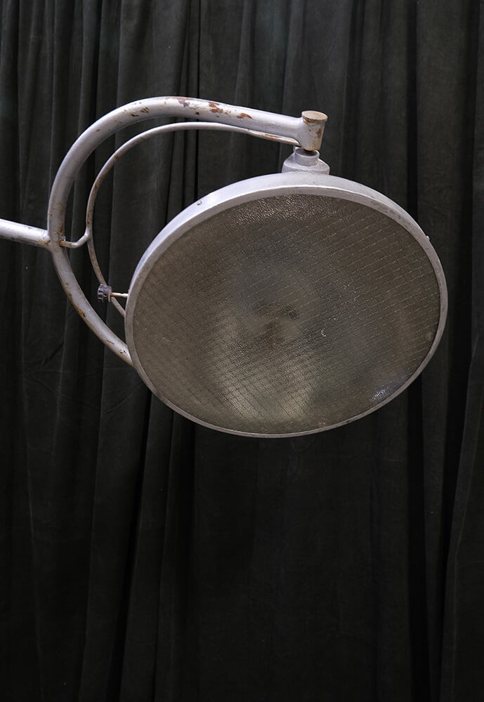 Tilføj et stykke historie til din indretning med denne gamle operationslampe, der er et perfekt eksempel på vintage industrielt design. Lampen har en kraftig fod med hjul, der gør det let at flytte den rundt. Uden ledning er lampen skabt til dekorative formål og vil gøre sig fantastisk som et blikfang i et hjørne af dit hjem eller erhvervslokale. Den robuste konstruktion og patina understreger dens tidløse charme.