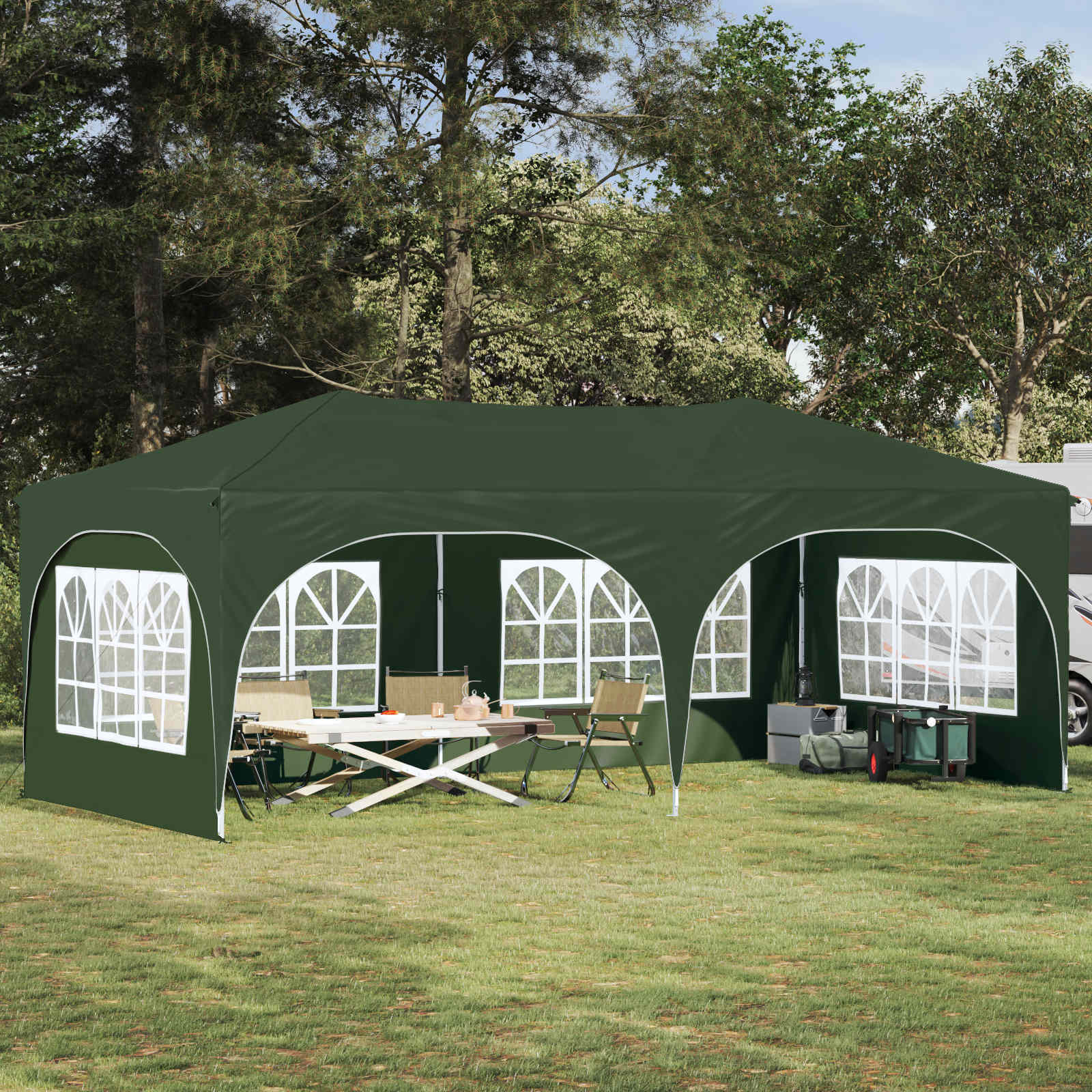 Dette alsidige pop-up festtelt er skabt til at gøre dine udendørs begivenheder uforglemmelige. Det er lavet af kvalitets Oxfordstof og har et moderne look med rene linjer og praktiske funktioner. Skal du holde havefest, bryllup eller en stor udendørs event, så giver dette telt masser af læ og en stilfuld atmosfære. Med sin hoppefunktion og stilfulde design er det en perfekt kombination af skønhed og funktionalitet, der forbedrer enhver fest med en imponerende tilstedeværelse.