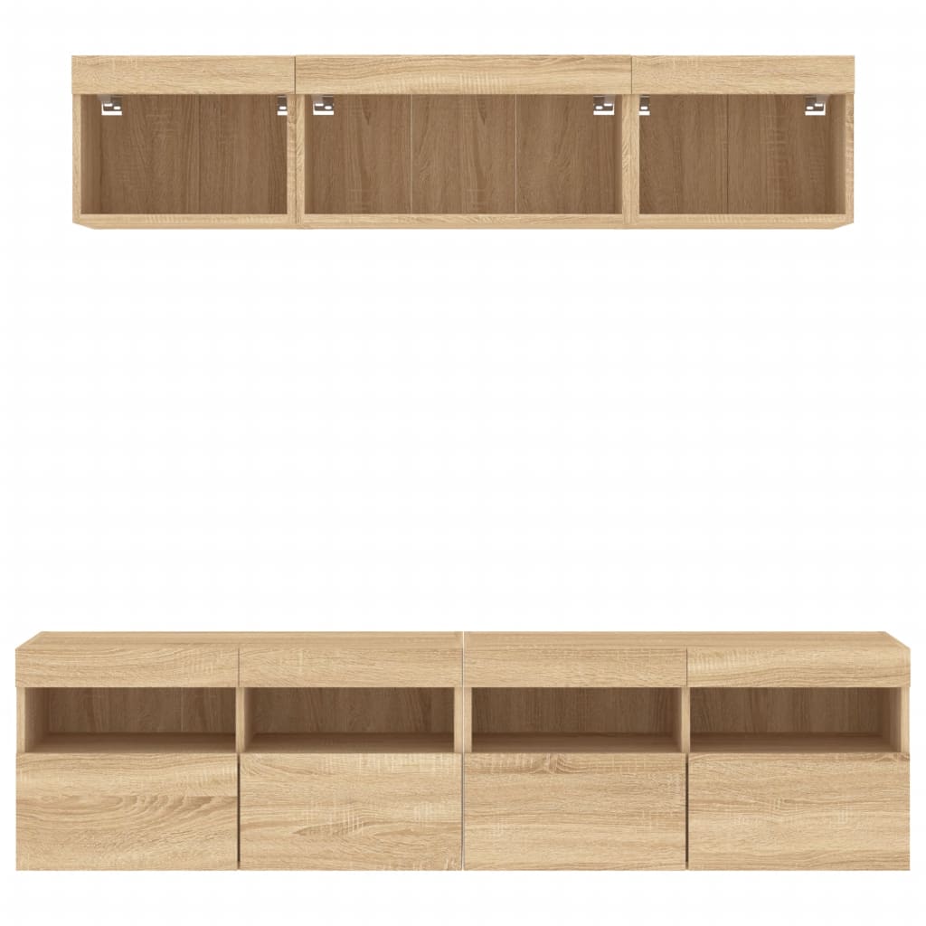 tv-møbel til væg 5 dele med LED-lys konstrueret træ sonoma-eg