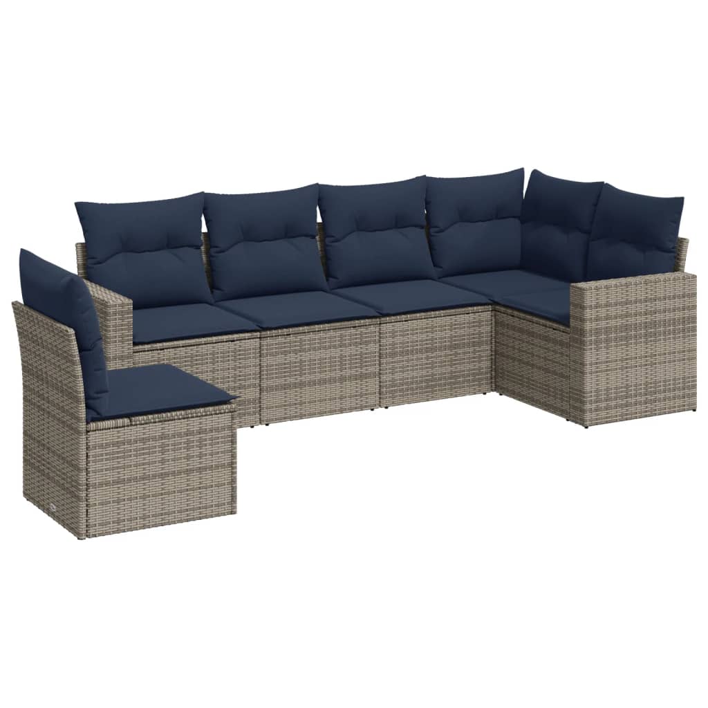 sofaesæt til haven 6 dele med hynder polyrattan grå