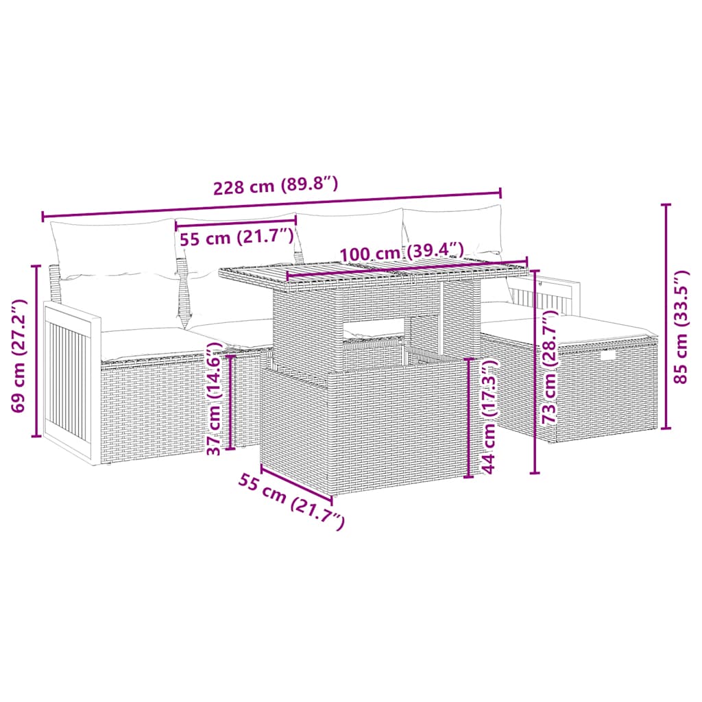 sofasæt til haven 6 dele med hynder polyrattan beige