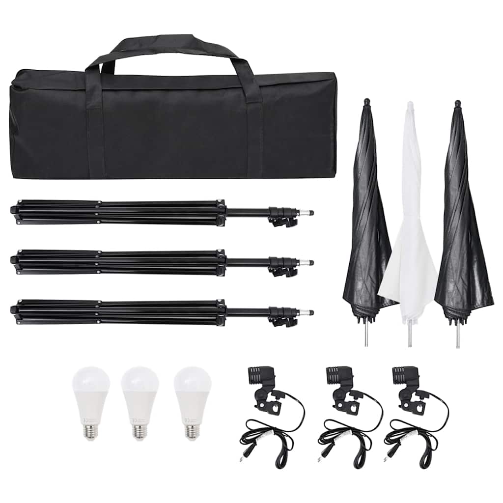 Fremragende ydeevne: Ved at bruge dagslyslamperne med en farvetemperatur på 5500K er det muligt at fange dit motiv på en naturlig måde. De tre paraplyer giver et blødt lys, så hårde skygger undgås.