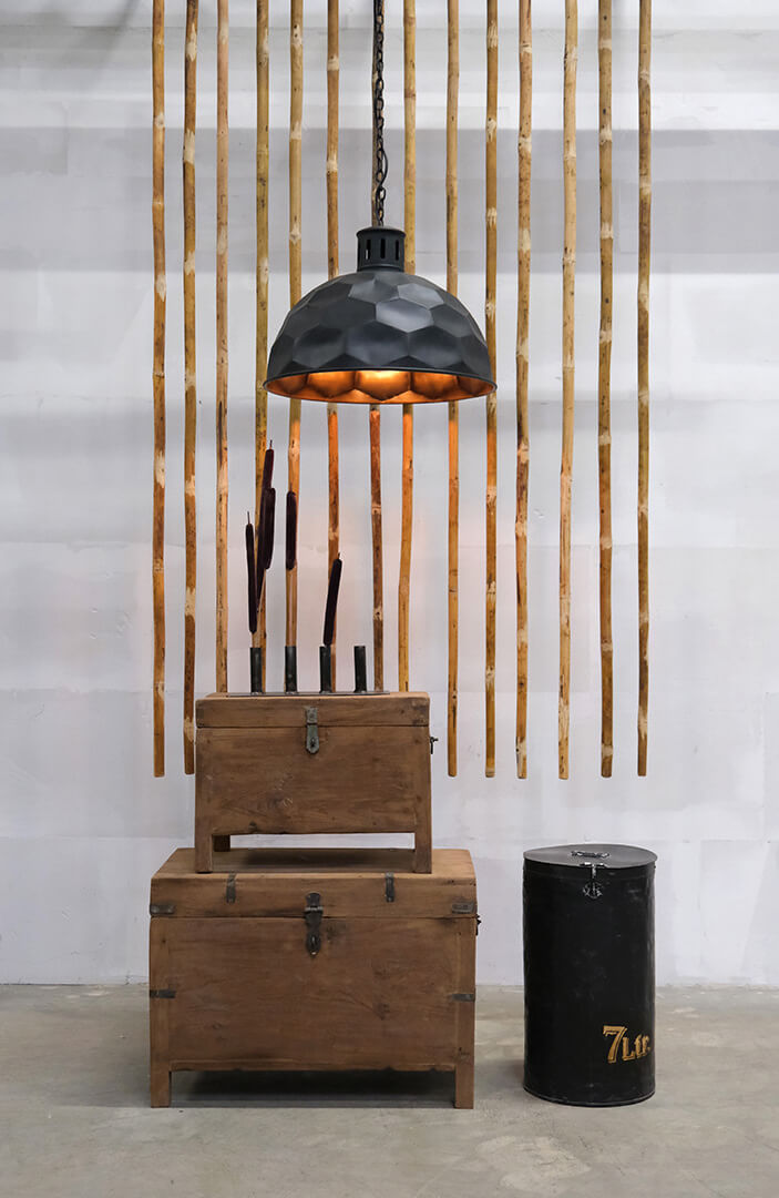 Stemningsfuld loftslampe i jern, der er malet mat sort uden på og bronze inden i. Lampen vil med det antikke messing inden i skærmen give en hyggelig varm belysning. Den er velegnet over sofabordet, i vinduet, ved spisepladsen - ja, overalt hvor du vil have lys. Lampens særprægede design vil helt sikkert skabe et flot blikfang.
