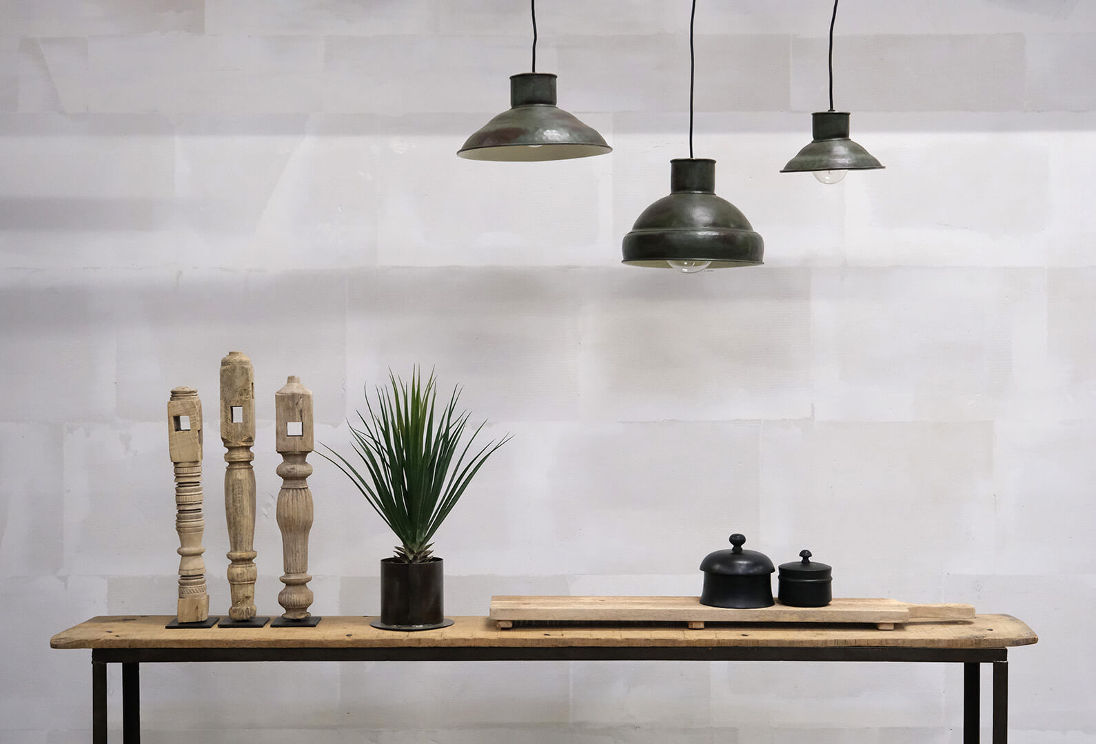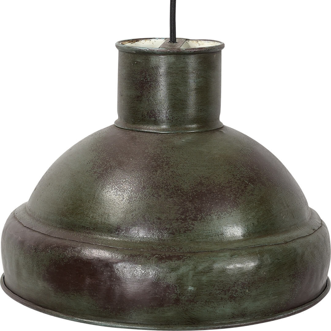Superflot rå fabrikslignende lampe, fremstillet i rå jern i en antik industrigrøn farve. Loftslampen har en 2 meter lang sort stof ledning. Lampen har et maskulint udtryk og vil give kant til din indretning samtidig med at den er en funktionel lyskilde.