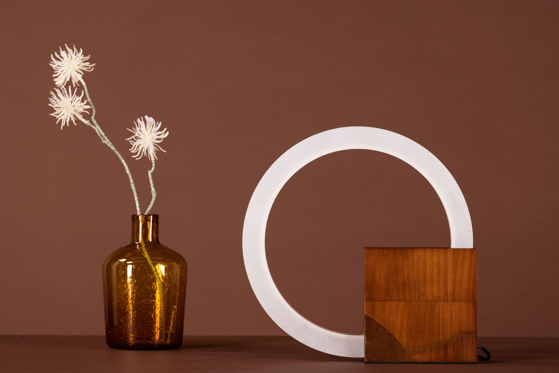 The table lamp Brive has a lamp foot in a trendy walnut colored wood and a white circular acrylic lamepram. With this lamp you get a unique interior detail that lights up the entire room with a pleasant white light. Place the lamp in a place that both needs to be brightened up and decorated and increase guaranteed the cozy factor in the home!
