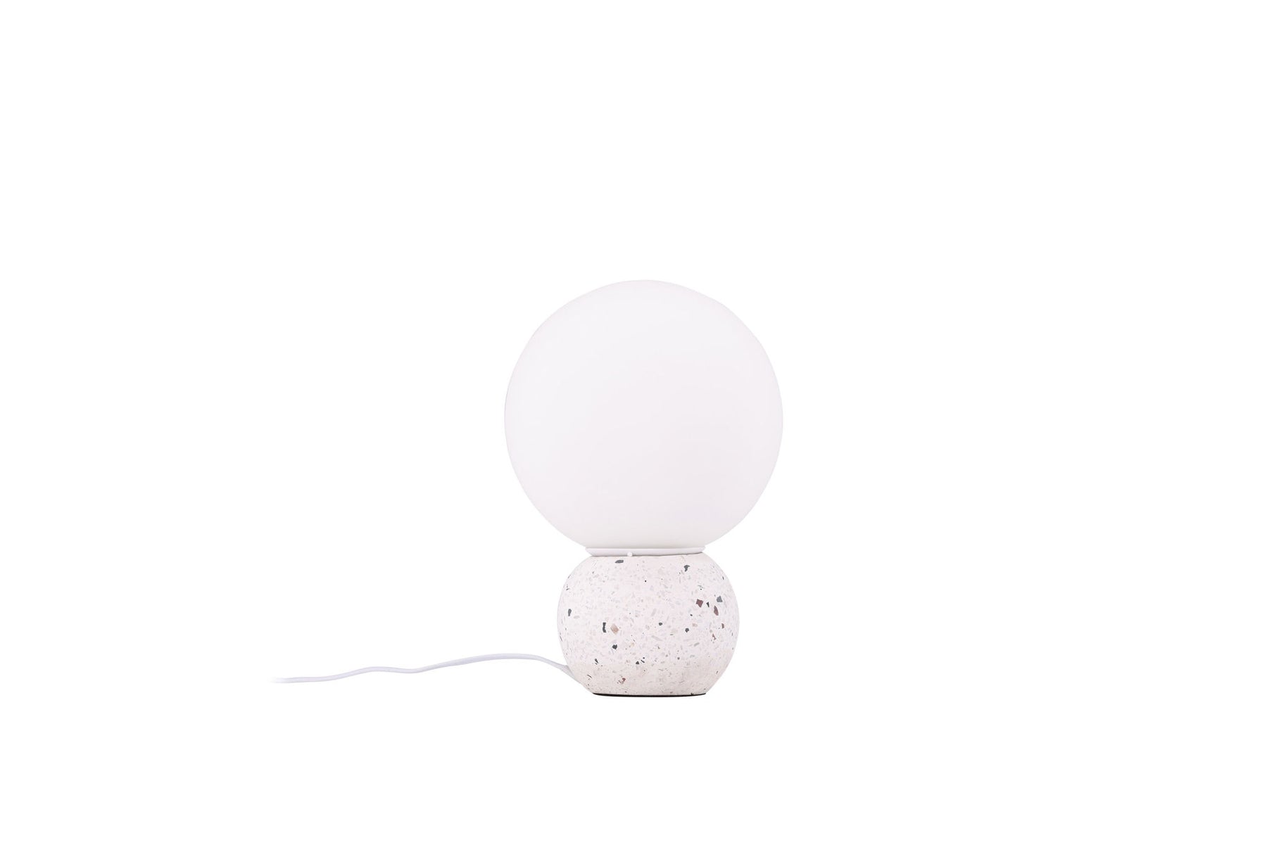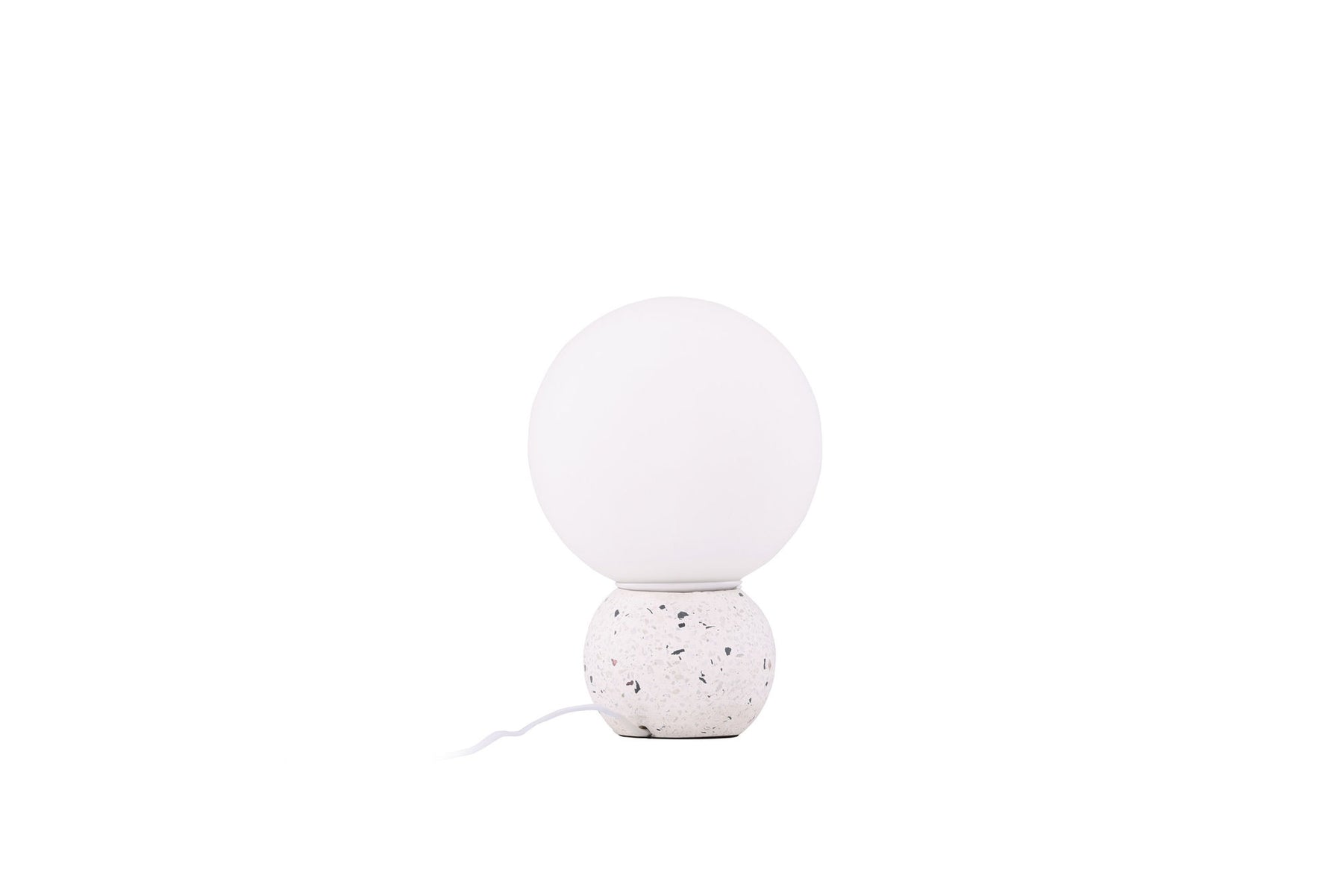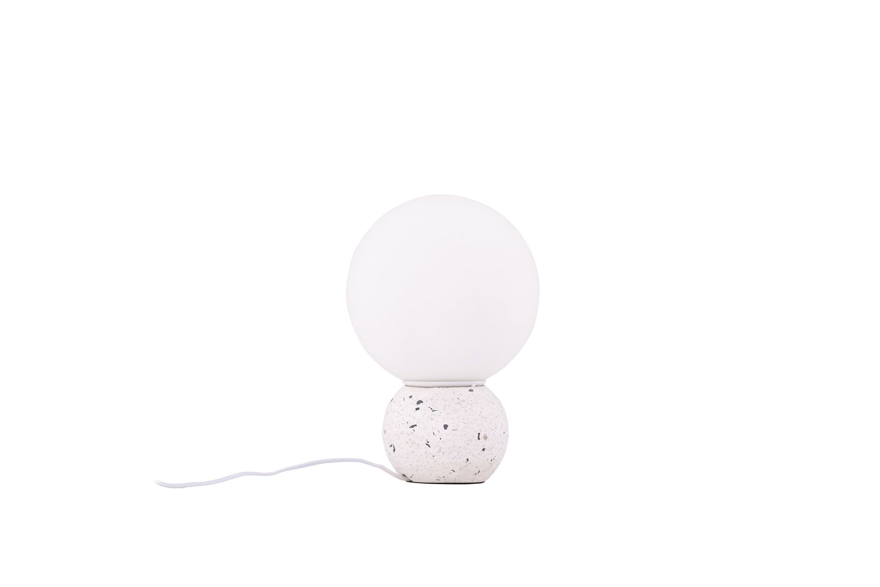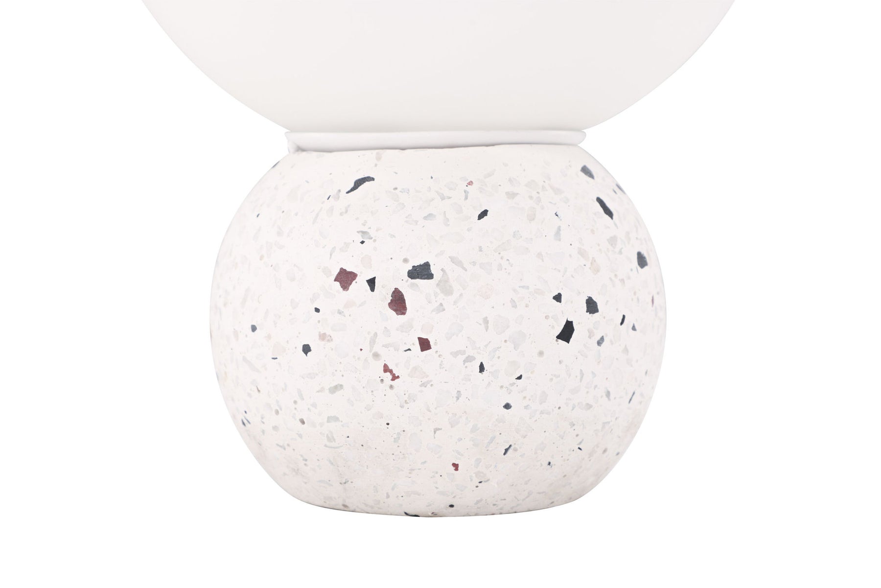 Metz is a trendy and stylish table lamp with a foot in white terrazzo with elements of black. The stylish colors make the lamp fit into most homes and interior styles. The lamp has a white round glass cup that lets through pleasant with light that creates a cozy glow wherever it is placed. The beautiful design allows the lamp to be used as an interior detail to raise the interior of the home.