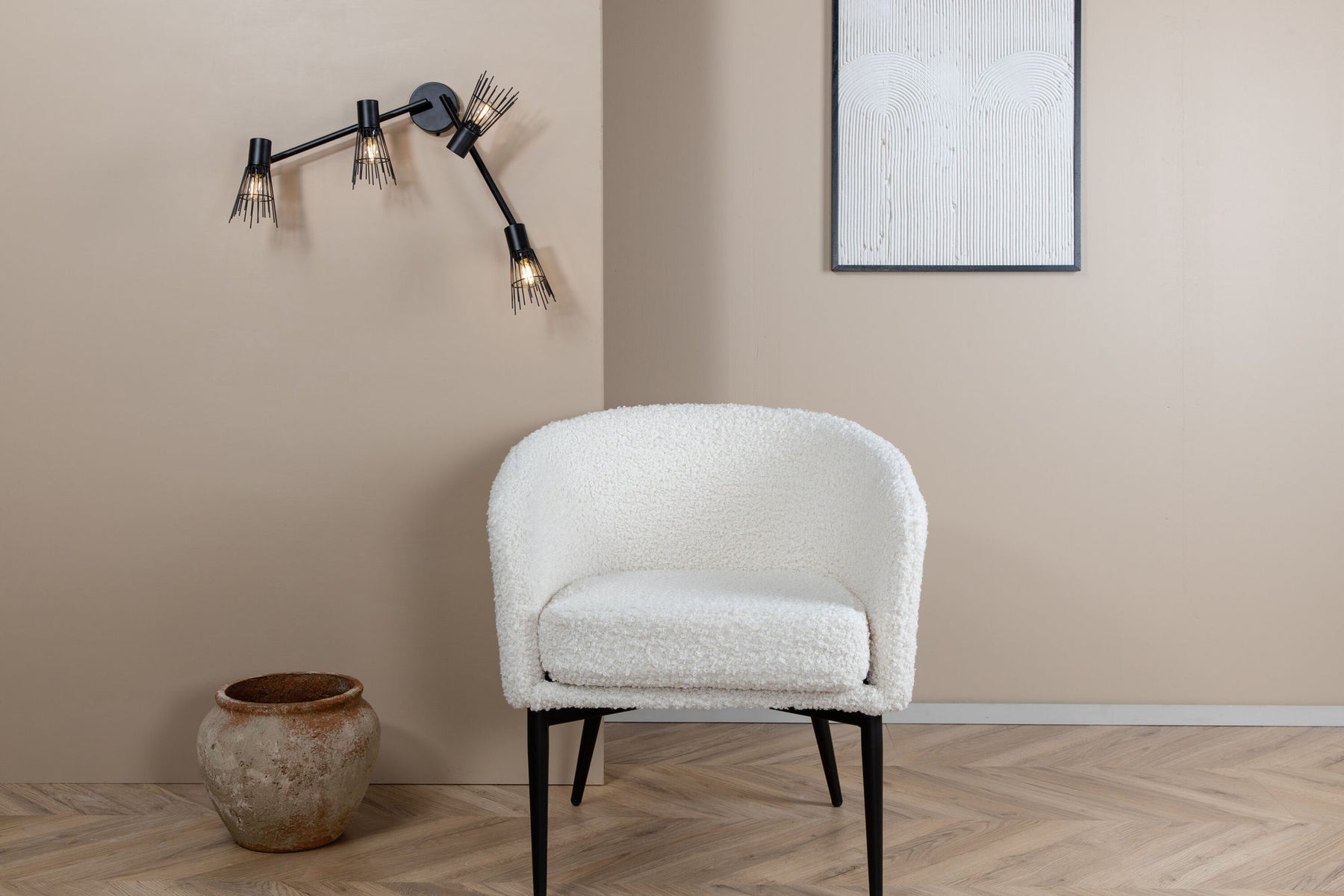 With the Pico wall lamp you get both practical and stylish lighting! The bracket has a simple design in black steel and four light sources. The lampshades have a decorative design that makes the lamp unique. Both the light sources and the arms can be adjusted depending on the taste and area of use which makes the lamp very useful. Place in the hall, living room or where point lighting is desired. During installation: A so-called fixed installation is required, which may only be carried out by an electrician.
