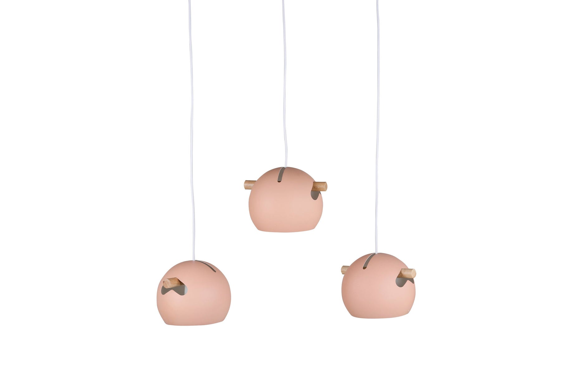 This ceiling lamp from the Tubbie series will be a nice interior detail and a practical light source! The soft shape of the three light sources and the trendy old pink color with details in walnut creates a warm and calm feeling in the room. The matching bracket in the ceiling creates a beautiful overall impression. Place the lamp over the dining table and enjoy comfortable lighting.