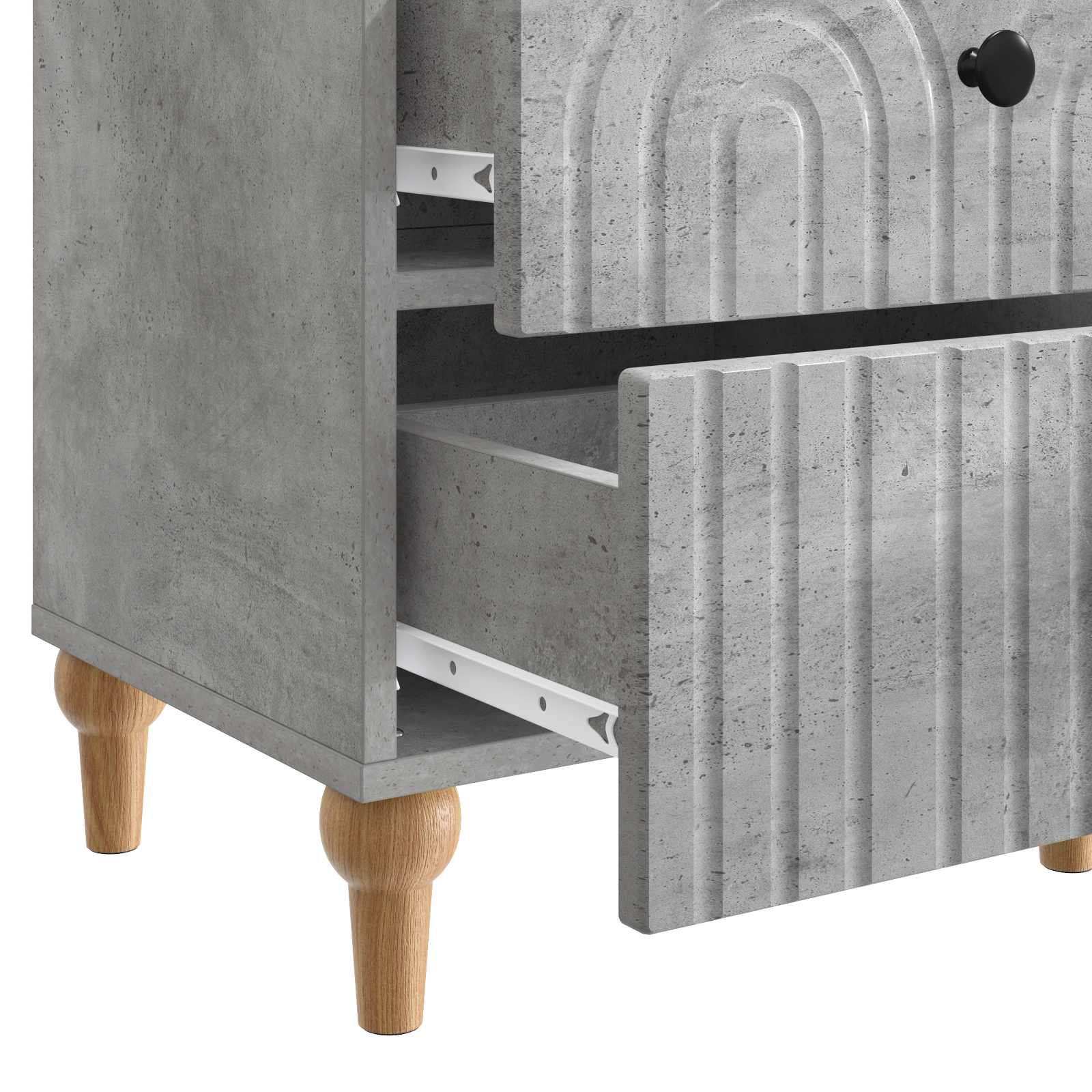 Dette moderne sengebord er et smart tilbehør til ethvert rum. Dets slanke rektangulære form og enkle linjer er kendetegnende for moderne design. De subtile striber gør det nemt at integrere i forskellige indretningsstile. Med målene 43 x 34,5 x 48 cm giver det en god overflade til lamper, bøger og andre ting, du bruger ofte. Det minimalistiske look er perfekt til dem, der sætter pris på både stil og funktion, og gør det til et ideelt valg til moderne boliger.