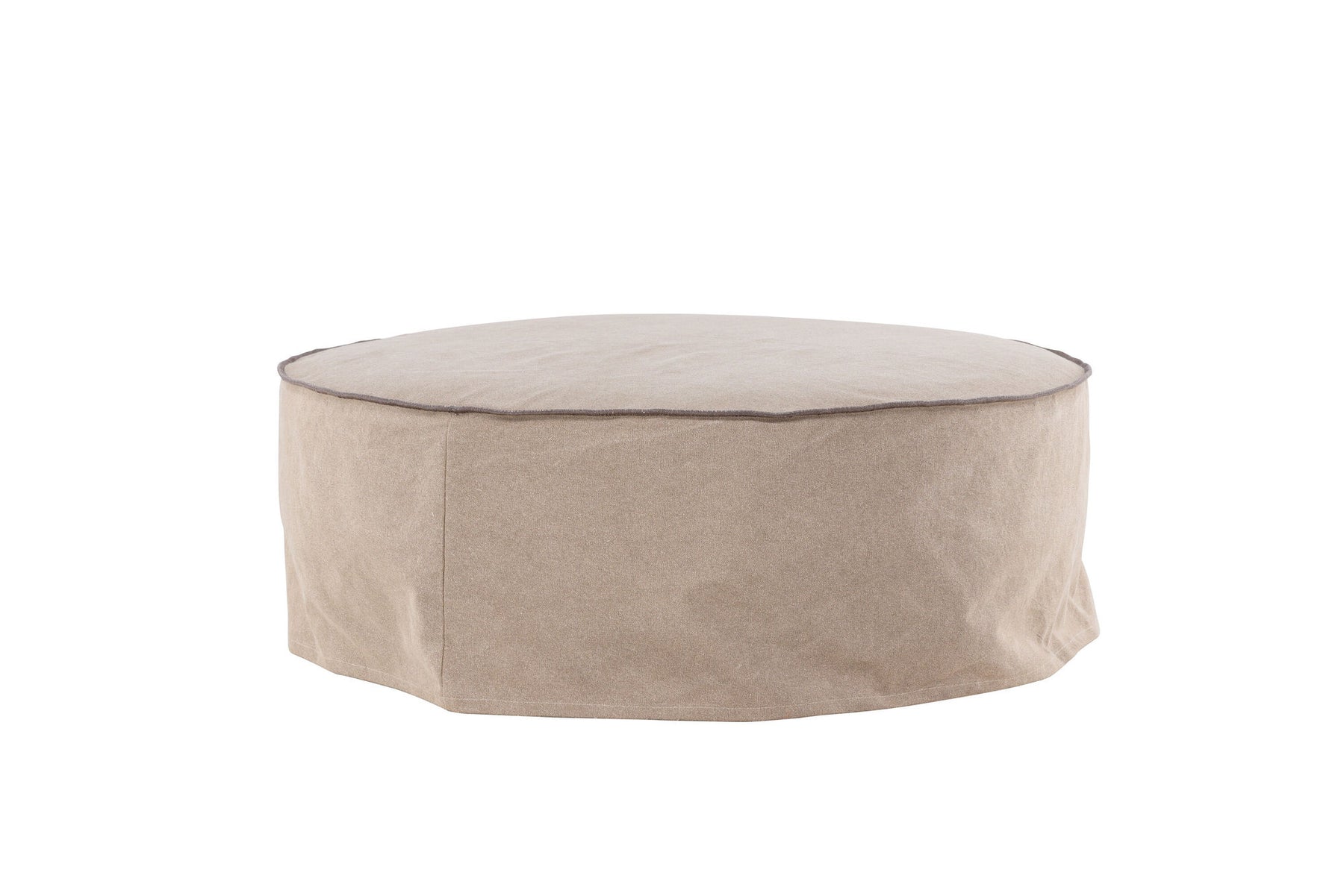 Our Vindö Ottoman is upholstered in an elegant linen fabric in a warm brown shade, offering a sophisticated and inviting feel. Its rounded shape and impressive diameter of 101 cm make it a central feature in your living room or any space where you need extra comfort and style.