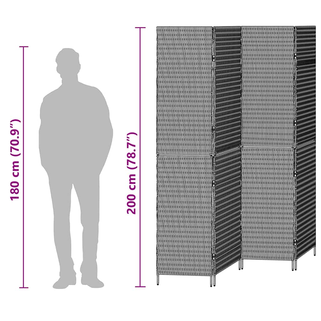 Denne poly rattan rumdeler er den ideelle løsning til at opdele rum i dit hjem med stil og lethed. Den moderne design i poly rattan giver et strejf af elegance, samtidig med at den er enkel og funktionel. Perfekt til stuen, den kan forvandle åbne områder til private rum med sin flotte rektangulære form og matte finish. Dens sammenfoldelige design gør den perfekt til dem, der sætter pris på fleksibilitet og brugervenlighed, derfor er den et alsidigt valg til enhver indendørs indretning.