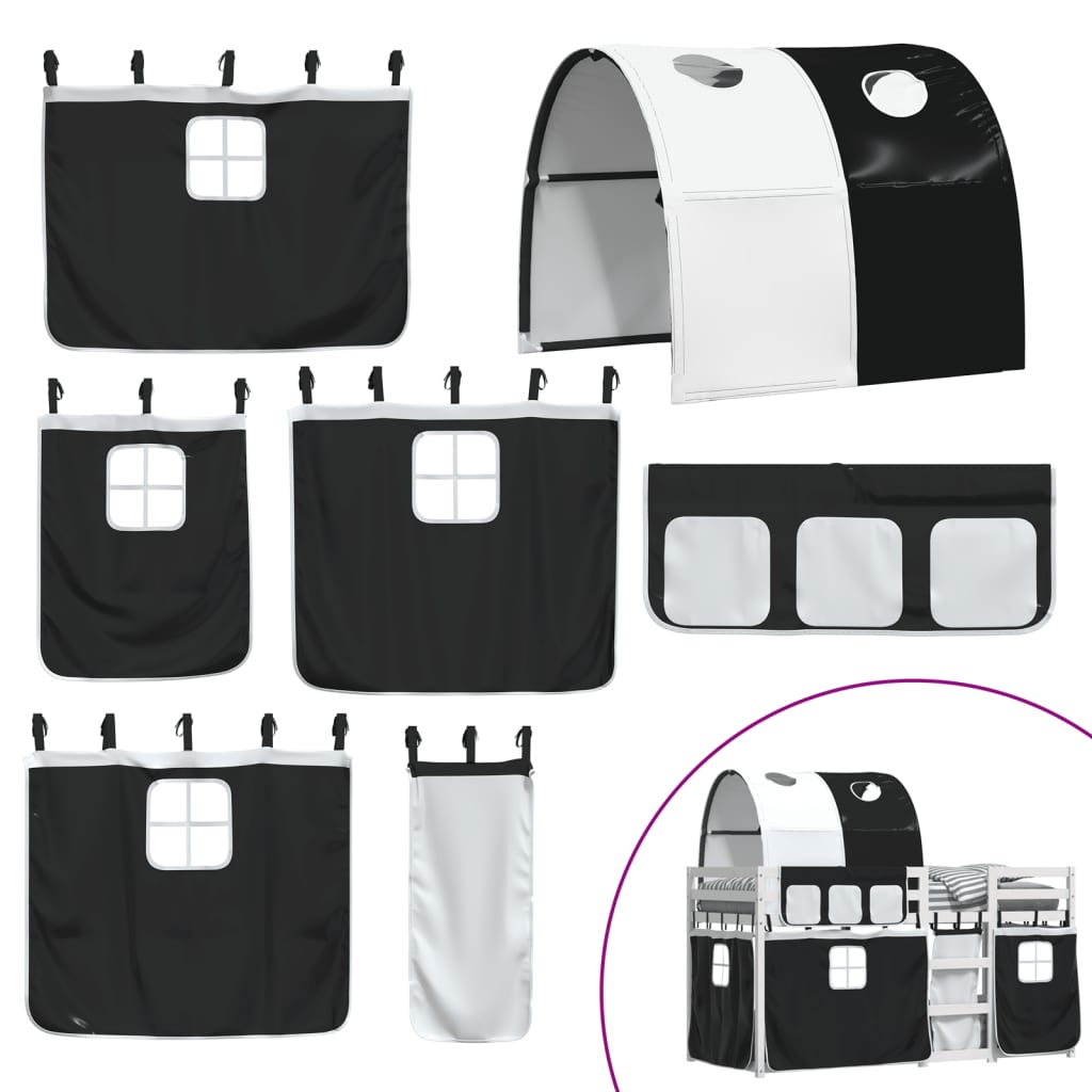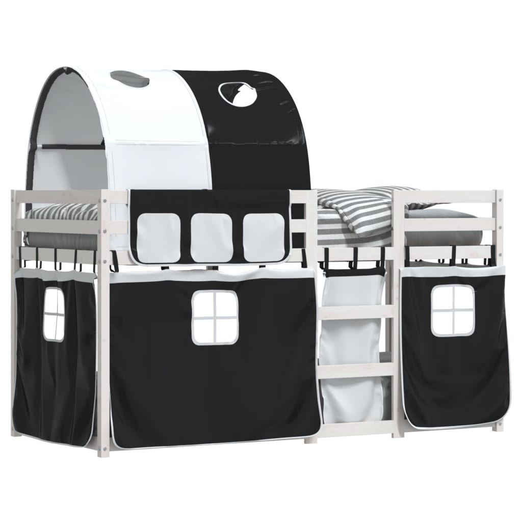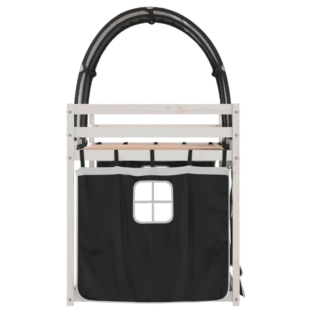 køjeseng med gardiner 90x190 cm massivt fyrretræ hvid og sort