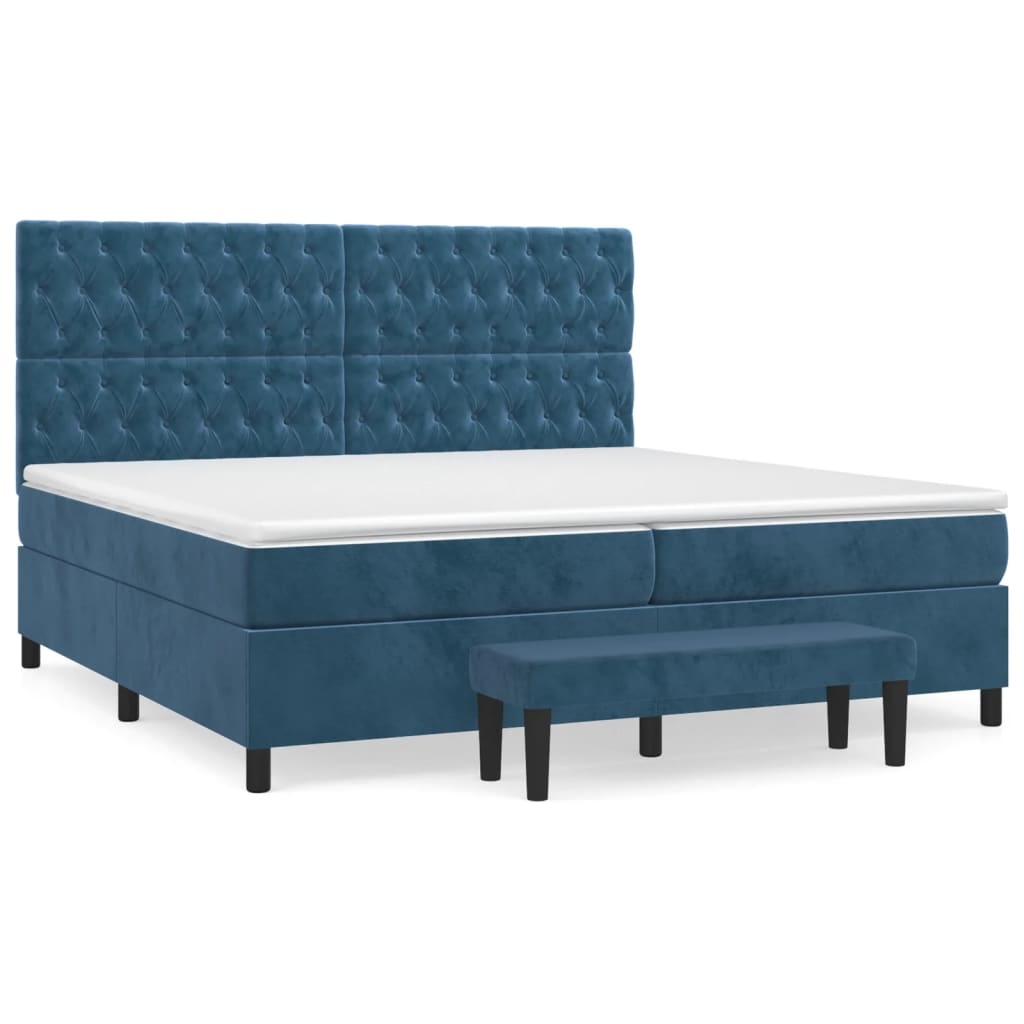 kontinentalseng med madras 200x200 cm fløjl mørkeblå