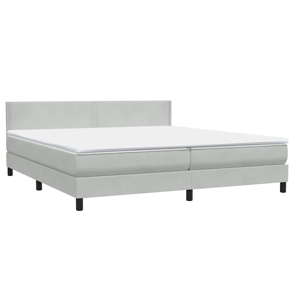 kontinentalseng med madras og LED-lys 180x210 cm fløjl lysegrå