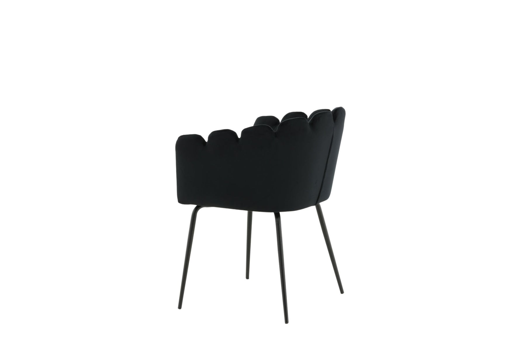 Elegante, tidløse og moderne - spisestuestole med alle de rigtige elementer! Limhamn spisestuestolen er en moderne favorit i mange hjem. Den har et indbydende design med en dekorativ, skalformet ryg med dekorative sømme og et rundt sæde i sort fløjlsstof. Benene er i sort pulverlakeret metal. Skab et behageligt blikfang i hjertet af dit hjem! Kræver en vis samling.