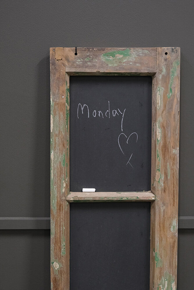 Denne fine tavle er lavet af en gammel vinduesramme, som har fået nyt liv. Den rå træramme med spor af patina og tidligere maling giver tavlen et charmerende, vintage udtryk, der tilføjer sjæl til ethvert rum. De fire separate tavlefelter giver dig rig mulighed for at skrive noter, lave lister eller til små beskeder - perfekt til caféer, butikker eller hjemmet, hvor den kan bruges både praktisk og dekorativt. Med sit smalle, vertikale design passer tavlen nemt ind på væggen, uden at den optager for meget plads. Det er genbrug med stil og en måde at tilføre din indretning noget helt særligt.