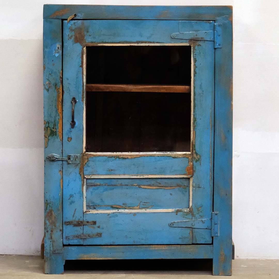 Trademark Living Blåt vitrineskab med glas i front og sider