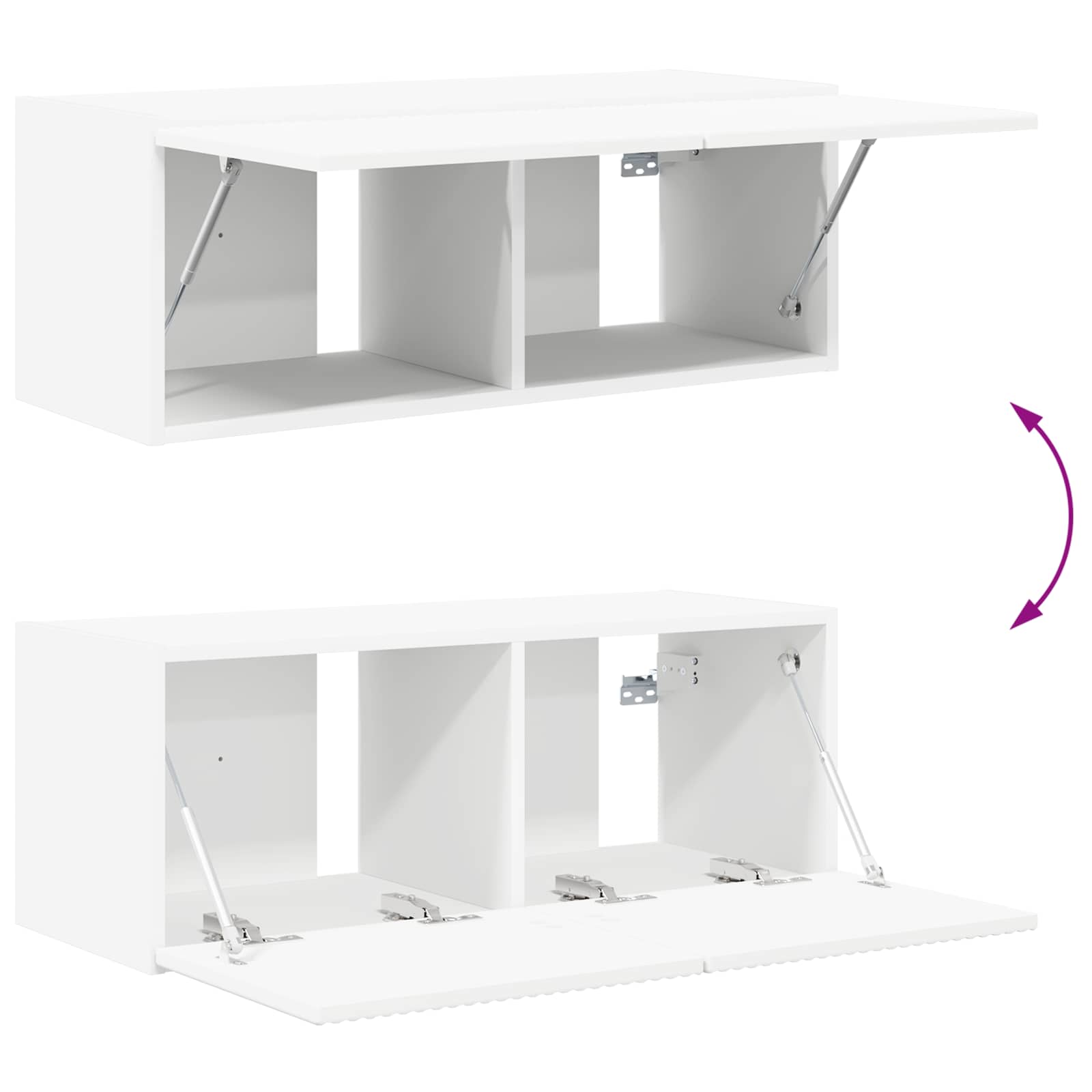 Dette tv-vægskabssæt er en moderne opbevaringsløsning, der passer perfekt ind i ethvert rum med sit stilrene og minimalistiske design. Lavet af konstrueret træ giver det en smart måde at organisere dit udstyr på, samtidig med at det tilfører et moderne præg til din indretning. Den væghængte form frigiver gulvplads, hvilket gør det ideelt til små boliger.