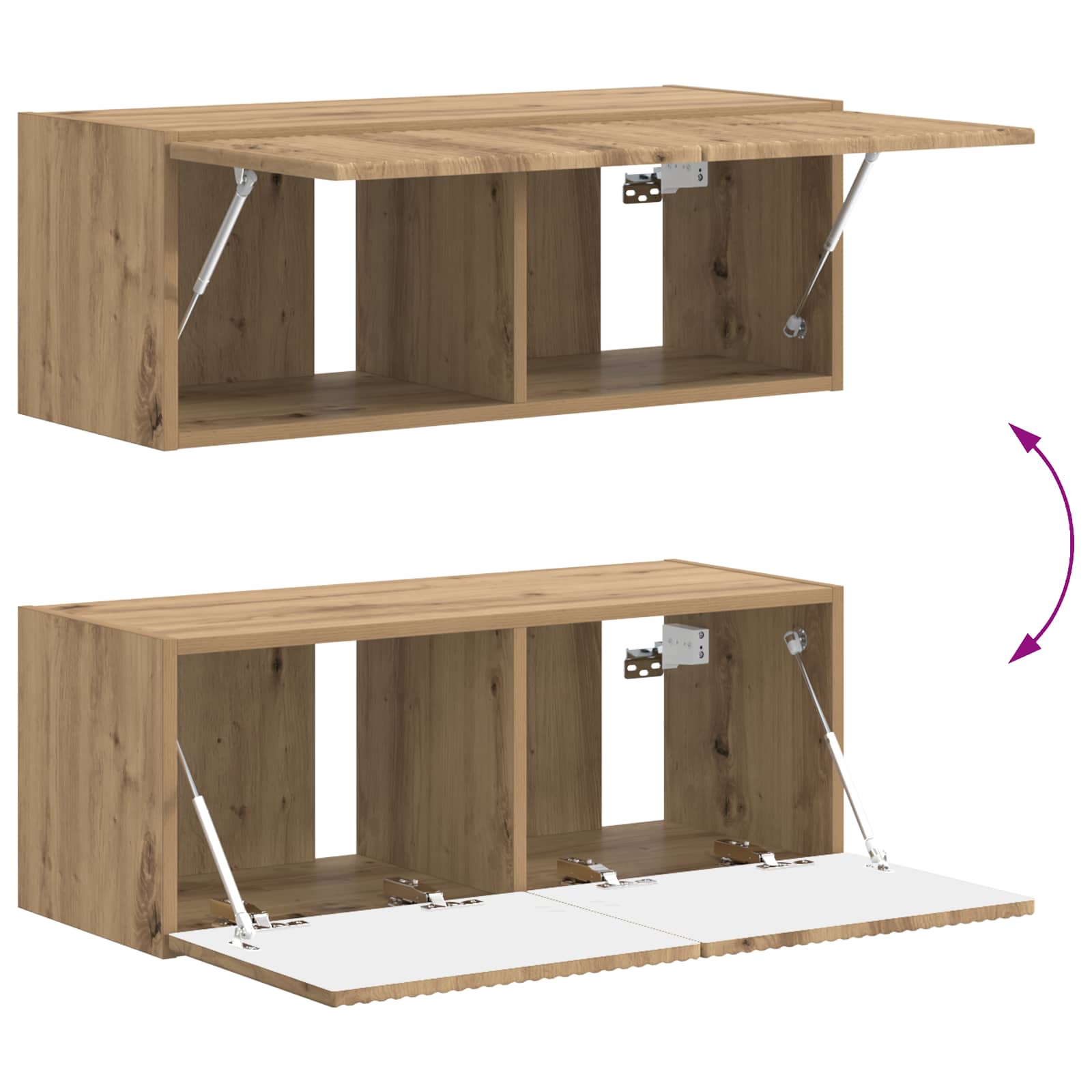 Dette moderne TV-skabsæt har et stilrent design med rene linjer og fokus på funktionalitet, perfekt til moderne hjem. Sættet består af tre vægmonterede skabe, der giver masser af opbevaringsplads, samtidigt med at de holder et strømlinet look. Dets konstruerede træ sikrer holdbarhed og tilføjer stil til din stue, så rummet føles sammenhængende og moderne.