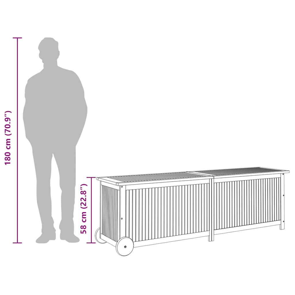 opbevaringsboks til have m. hjul 150x50x58 cm massivt akacietræ
