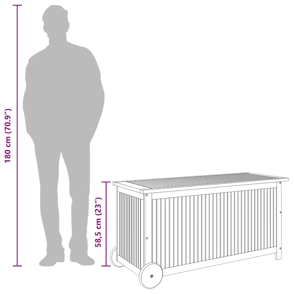 opbevaringsboks til haven med hjul 113x50x58 cm massivt træ