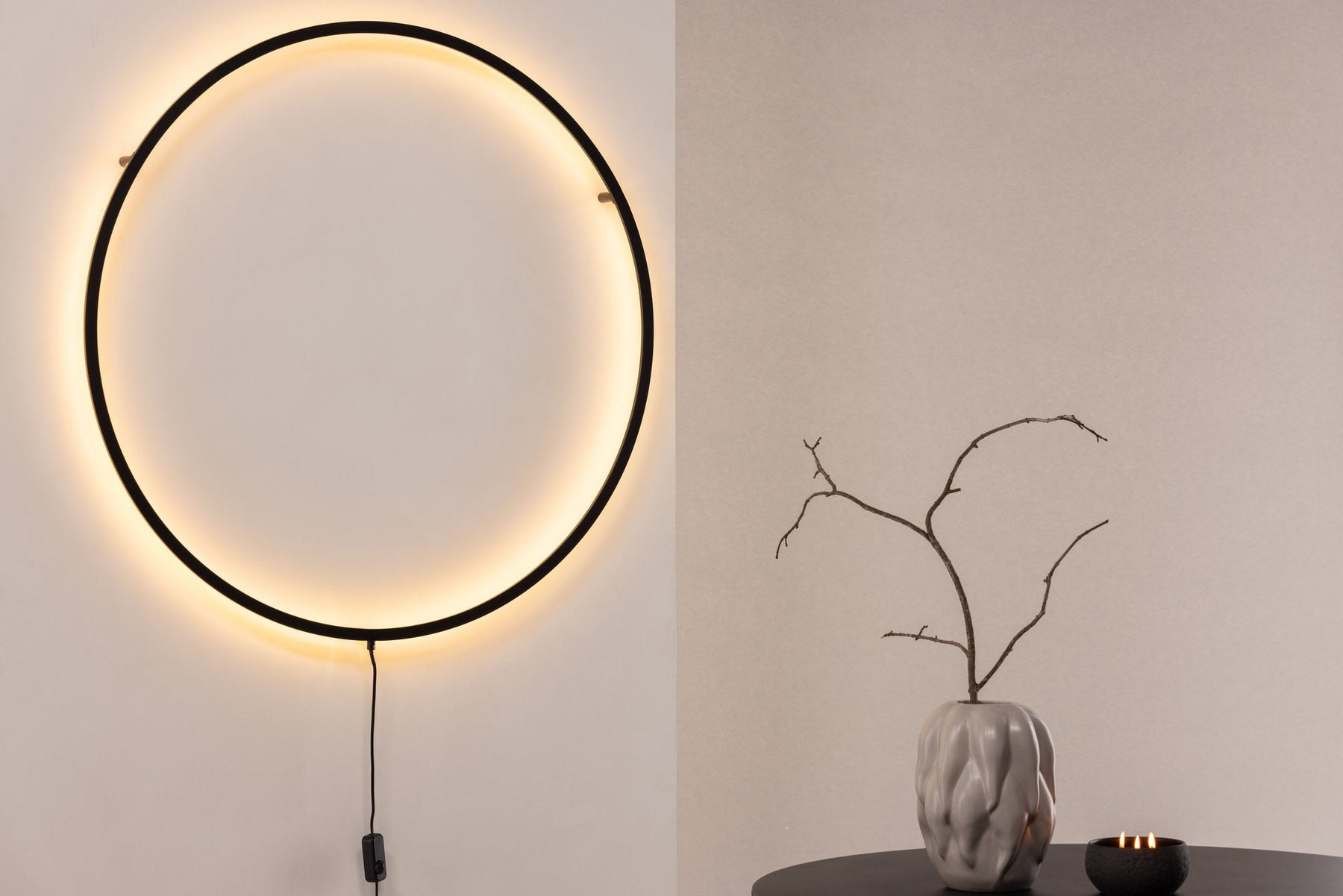 Væglampen Sömjöle fra Josefin Lustig-kollektionen har et unikt design, der imponerer! Lampen har en rund ramme i sort aluminium med LED-lamper bagved, som giver et smukt lys på væggen og et behageligt lys i rummet. Det pæne design gør, at lampen passer ind i de fleste rum og indretningsstile og bliver en stilfuld detalje. Med denne lampe er du garanteret et unikt blikfang i hjemmet!