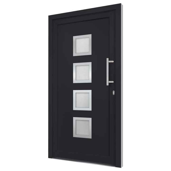 Vores indgangsdør er udstyret med kvalitetsramme og -fyldning, aluminiumsdørtrin, justerbare 3D-hængsler (3 hængsler pr. dør), 5 svampehovedlåse, isolerende lakering og 1,2 mm stålforstærkning. Derudover imponerer indgangsdøren i aluminium med sin robuste kvalitet og høje låsebekvemmelighed.