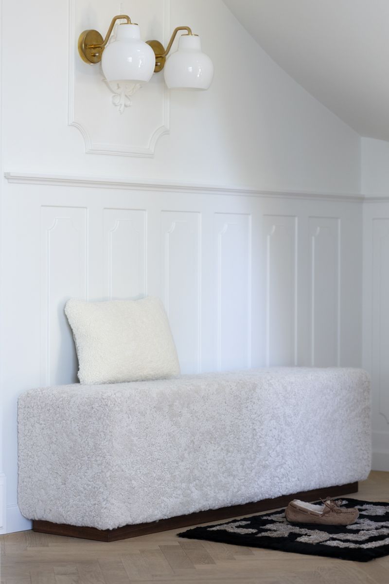 Benjamin Bænken bringer både elegance og funktionalitet til dit hjem. Den fås i enten eg eller valnøddetræ og er polstret med det blødeste lammeskind. Bænken er en unik kombination af naturlige materialer og moderne design.