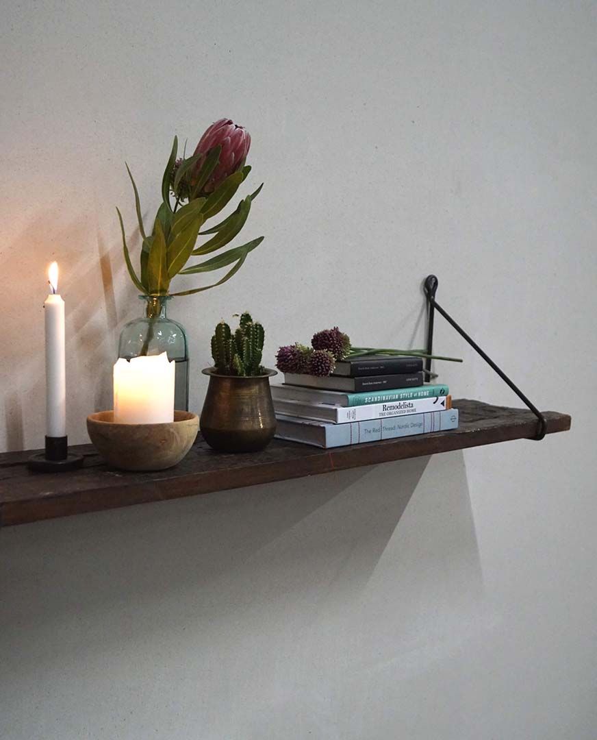 Hylde i råt træ med sorte hyldebærere i jern - large. Rå, flot og funktionel til opbevaring eller udstilling af dine skønne ting. Hylden fås i tre størrelser.
