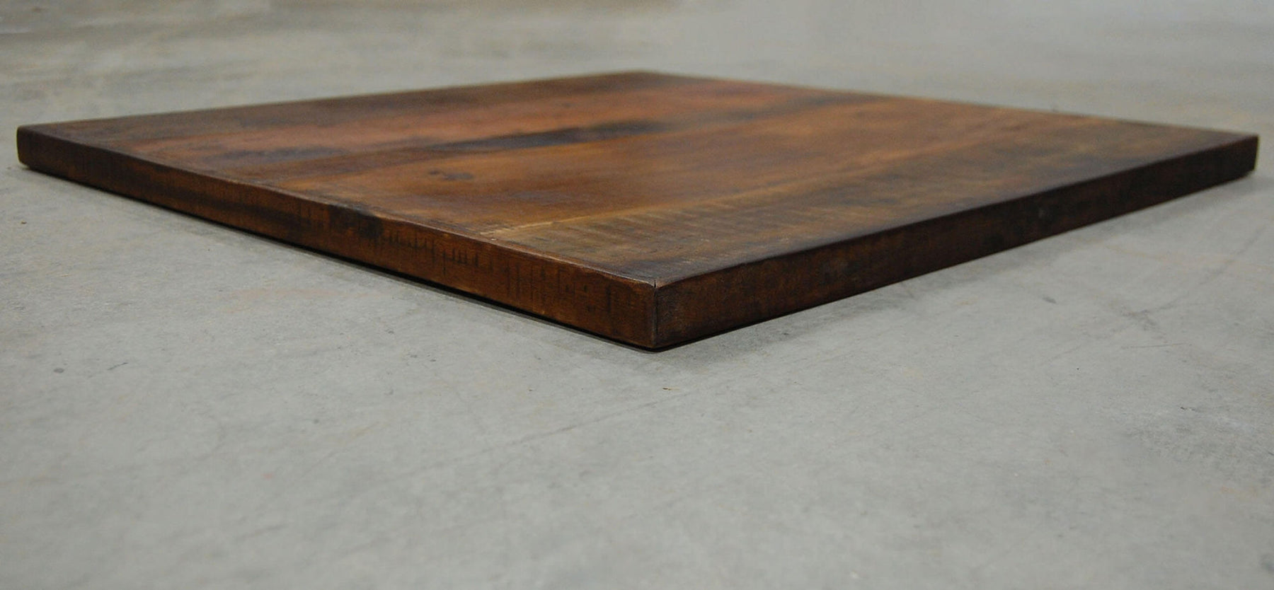 Rustik, rå og fyldt med sjæl – denne kvadratiske bordplade på 70 x 70 cm er fremstillet af smukt patineret genanvendt træ. De naturlige mærker og ujævnheder fortæller en historie om tidligere liv og giver bordpladen masser af karakter. Den varme træfarve og den unikke struktur gør den til et oplagt valg for dig, der ønsker et bord med kant. Passer perfekt til vores understel og kan bruges i alt fra caféer og restauranter til en rå indretning i hjemmet.