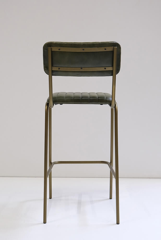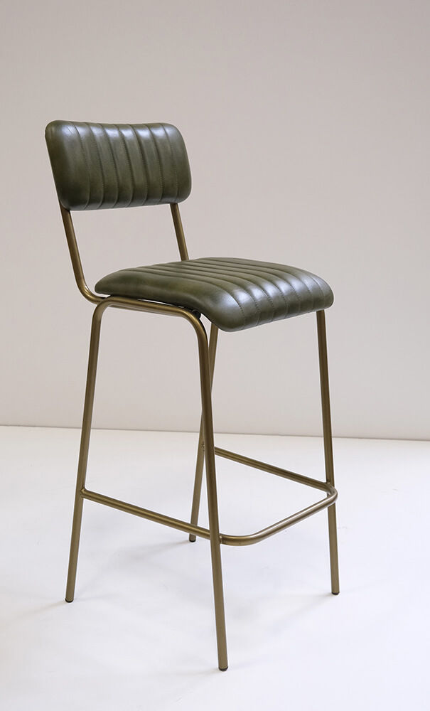 Lækker barstol med bløde former og endeløs komfort. Barstolen er beklædt med polstret quiltet bøffellæder i sæde og ryg. Det høje slanke stel i jern giver barstolen et klassisk og let udtryk. Bemærk at barstolen leveres i to dele med en lille pose med skruer, så man nemt kan montere ryggen på stolen. Søg på MA0114, for at se en matchende spisebordsstol.
