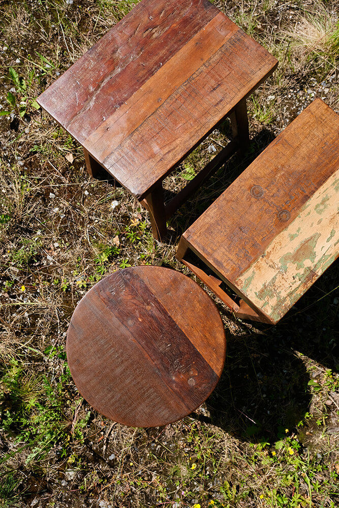 En rå og rustik skammel fremstillet af genbrugstræ, der emmer af charme og historie. De naturlige træåretegninger og den slidte finish giver skamlen masser af karakter og personlighed, mens det enkle udseende gør den både praktisk og tidløs. Perfekt som ekstra siddeplads i en café, som en dekorativ detalje i butikken, eller som en praktisk lille hjælper i hjemmet – uanset hvor den placeres, bringer den et strejf af autenticitet og rå kant med sig.